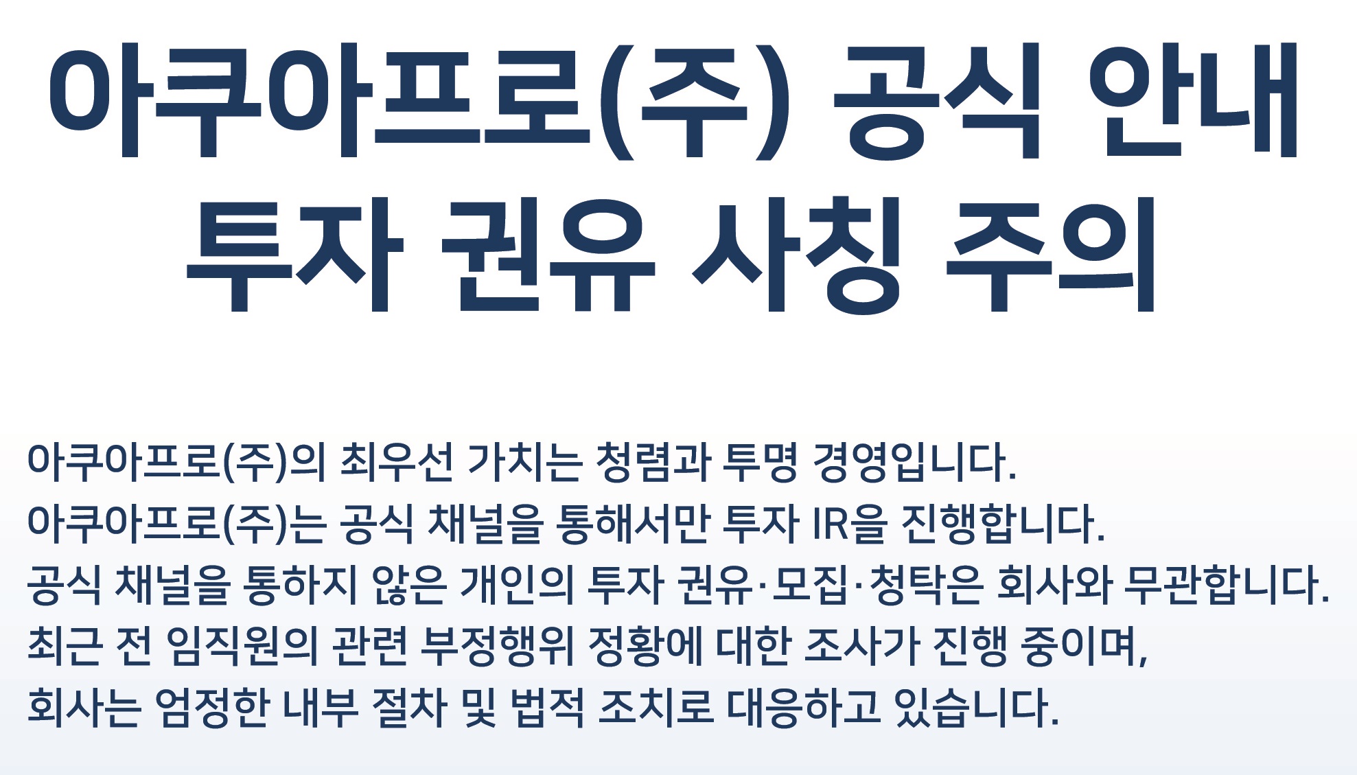 아쿠아프로 사칭 투자 권유 주의 -